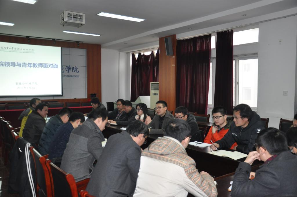 本网讯 为深入推进中青年教师教学科研能力提升计划,关心、关爱青年教师成长和发展,1月3日下午,资源与环境学院组织开展了党政领导与青年教师“面对面”活动,了解青年教师在教学科研中存在的问题和困难,共同寻找解决思路和办法,提振精神、汇聚发展力量。学院近三年新进博士参加座谈会,会议由院长郜红建主持。