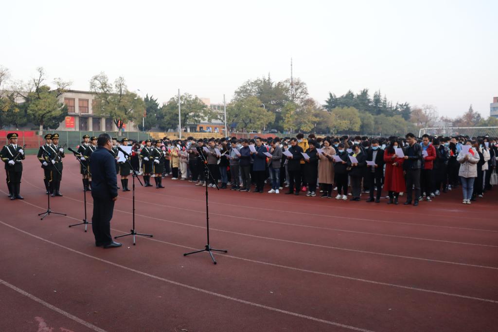 升旗仪式后,闫大玮带领全体师生诵读了宪法部分条款,通过宪法晨读活动,深入学习宣传习近平法治思想,大力弘扬宪法精神,进一步加强师生的法律意识,营造人人学习宣传宪法,维护宪法权威的氛围。