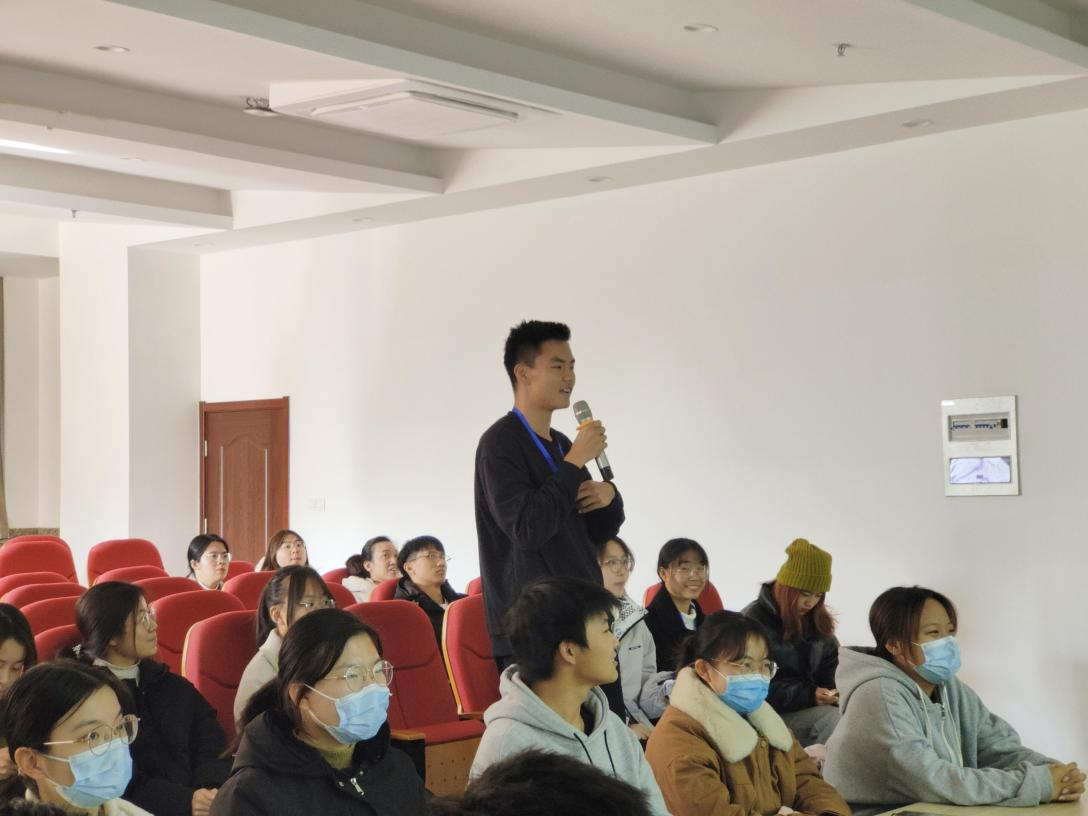 钱慧结合学院专业特点,从毕业生心理危机的源头、就业心理危机的表现和原因分析、毕业生心理调适方法和心理危机预防干预四个角度全面分析了当前的毕业生就业心理状况,并结合当前就业环境给同学们提出了合理的建议,与同学们进行互动交流。