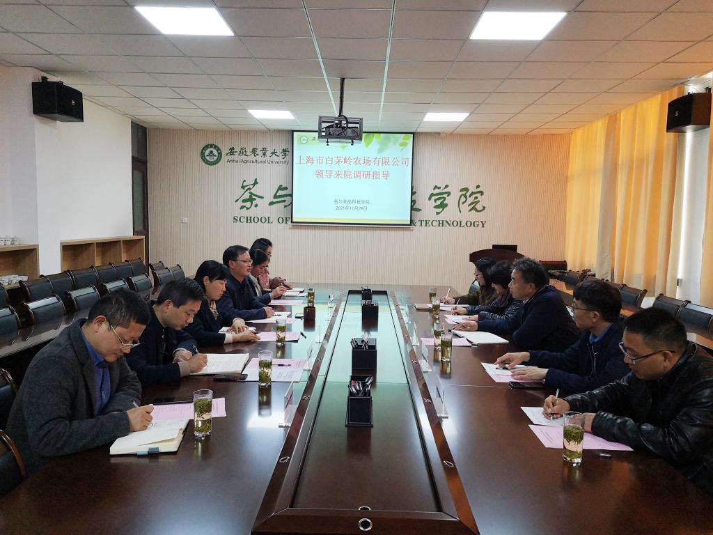 本网讯11月29日,上海市白茅岭农场有限公司党委书记、执行董事田广荣等一行5人来茶与食品科技学院调研。学院党委书记唐红萍、院长李大祥、副书记夏业鲍等在茶业楼215会议室热情接待了田广荣一行。院长李大祥主持座谈会。