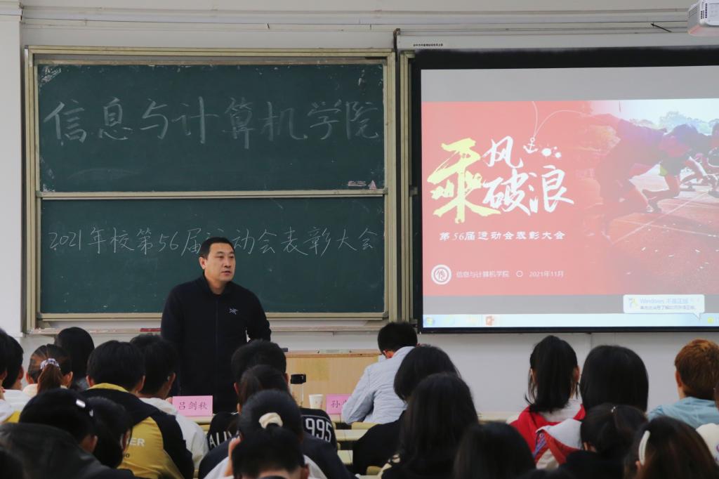 本网讯为表彰在2021年校运动会中表现优异的运动员及志愿者,激励学生积极参与体育锻炼,11月17日,信息与计算机学院在经计楼202教室举行校第56届运动会表彰大会。学院党委副书记、纪委书记、副院长吕剑秋,团委相关负责老师及校第56届运动会运动员、志愿者及学院学生组织代表参加了大会。