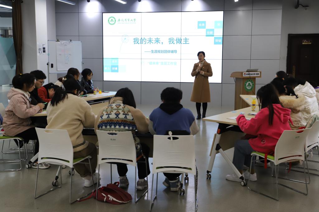 陈晓玲在团体辅导中以目标为导向,根据参训学生的生涯准备度情况有针对性地开展了“生涯平衡轮”“十年后的名片”等项目,引领大家结合自身专业特点与我国第二个百年奋斗目标设定职业目标。培训过程中,同学们积极分享、热烈讨论,都表达了不同程度的收获与成长。