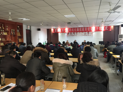 本网讯:1月10日-16日,由省农机管理局主办、我校工学院承办的安徽省第七期农机化继续教育培训班在我校开班。来自全省各市县农机管理局、农机技术推广站及农机监理站等农机系统技术骨干人员共计128人参加了培训班。