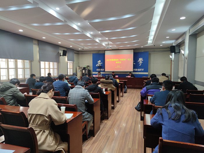 本网讯12月10日上午,科技处在校第二会议室举办2021年揭榜挂帅“科研类“项目推进会。中国科学技术大学教授蔡一夫、我校人事处负责人应邀作专题报告。我校发规处负责人、2021年揭榜挂帅“科研类”项目负责人、团队成员等参加了会议。科技处副处长倪健主持推进会。