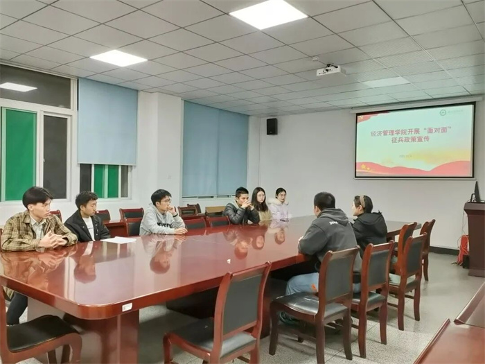 本网讯国无防不安,军无兵不强。为切实做好2022年春季征兵工作,经济管理学院多措并举提高精准征兵宣传效果,通过“微信公众号”宣传征兵政策、精准摸排毕业班男生入伍意愿、点对点发放征兵入伍宣传册,大力宣传征兵基本条件、报名方式及优待安置政策,提高适龄学生征兵政策的知晓率,激发适龄青年参军入伍的积极性。