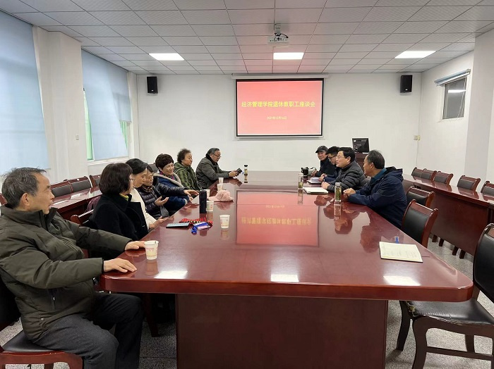 本网讯12月16日上午,经济管理学院在经管楼304会议室召开退休教职工座谈会。会议由学院党委书记、院长孙超主持,院党委副书记、纪委书记吴国卿及学院退休教职工参加了会议。