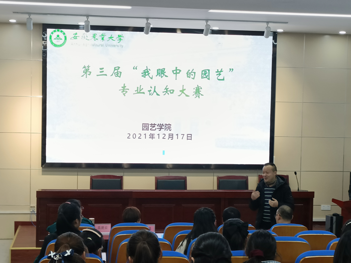 本网讯 12月17日下午,园艺学院第三届“我眼中的园艺”专业认知大赛在二教245报告厅成功举行,学院党委副书记、副院长、纪委书记鄢高翔,观赏园艺系、果树科学系、设施工程系、蔬菜科学系的系主任出席并担任本次比赛的评委。