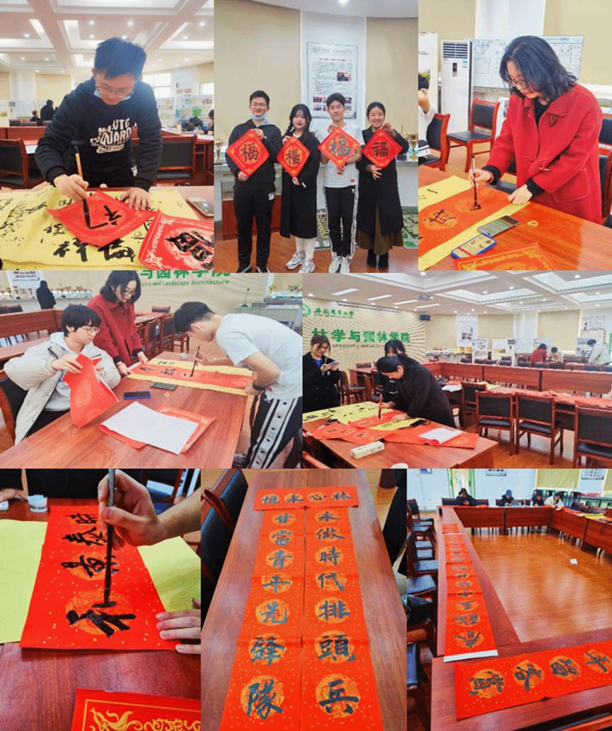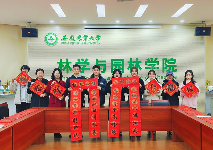 本网讯丹心绘就林心,翰墨书写林茵。为庆祝中国共产党成立100周年,继承和弘扬中华优秀传统文化,增强学院文化软实力,12月19日下午,由林学与园林学院党委领导、团委指导的学院思想政治教育“四小组”全体成员在林学楼二楼报告厅开展“丹心绘就林心,翰墨书写林茵”主题迎新年写春联活动,本次活动由院兼职团委副书记、思想政治教育四小组学生负责人主持开展。
