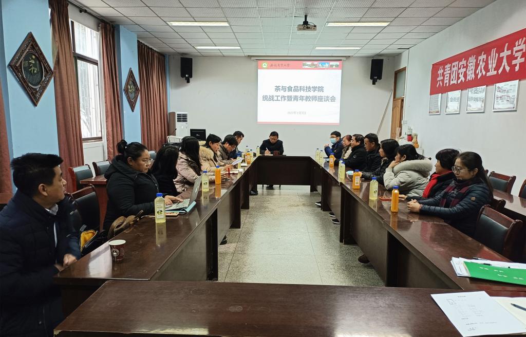本网讯 近日,茶与食品科技学院统战工作与青年教师座谈会在茶业楼会议室召开。学院领导班子成员、各民主党派人士、青年教师代表参加会议。会议由学院党委书记唐红萍主持。
