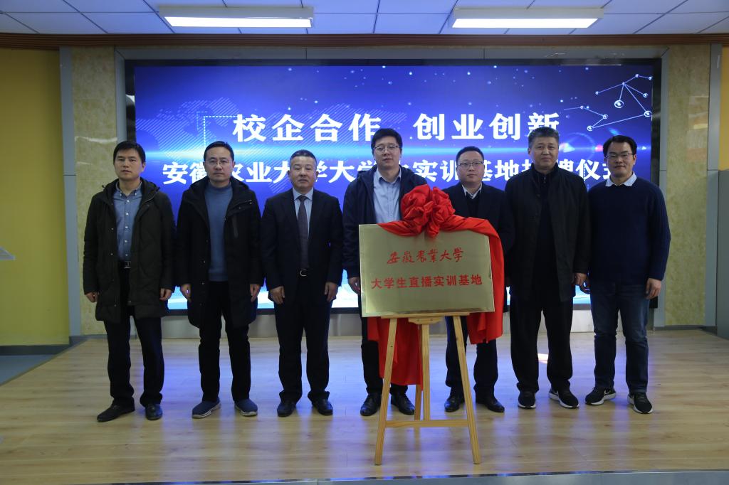 随后,林煦东与李卫东分别代表校企双方,为“安徽农业大学直播实训基地”揭牌。揭牌仪式后观摩了农品严选直播团队的现场直播展演。