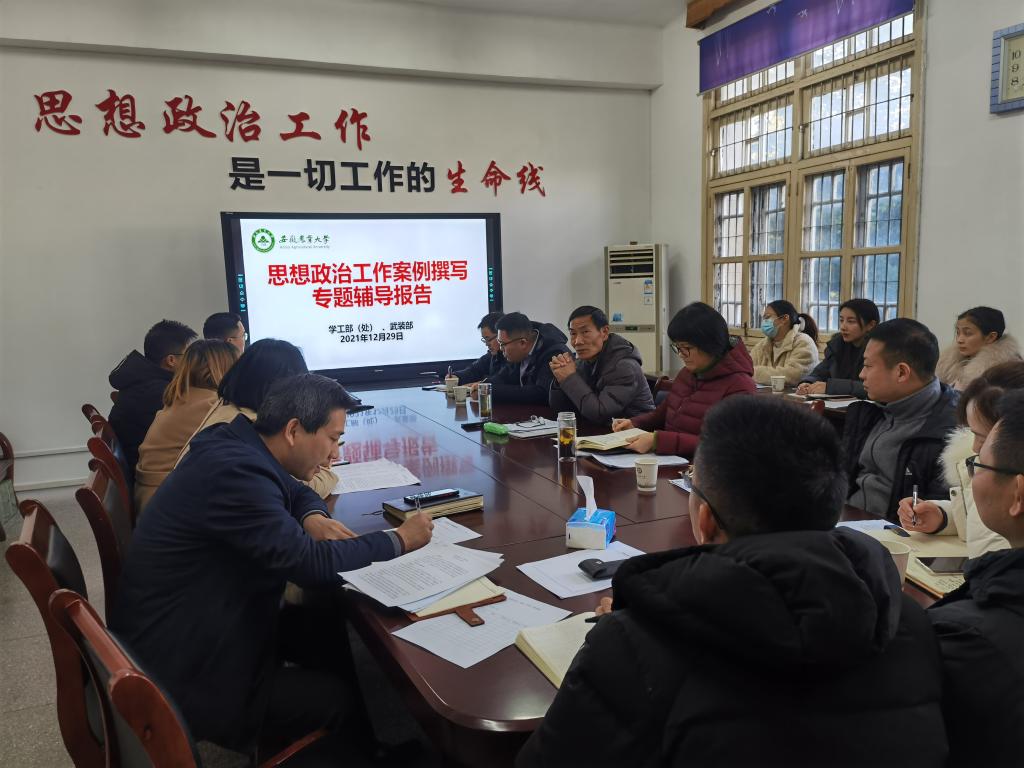 本网讯 12月29日下午,安徽师范大学马克思主义学院教授、博士生导师朱平应邀到我校做了思想政治工作案例撰写专题辅导报告,部分学院党委副书记、专职辅导员参加会议。学工部(处)、武装部处长姚莉主持会议。