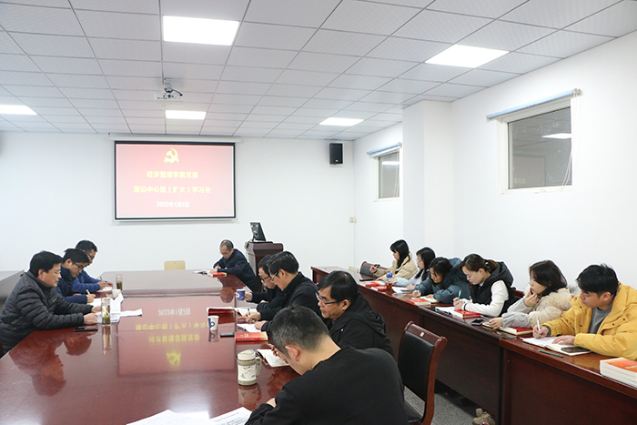 本网讯1月2日下午,经济管理学院党委理论中心组(扩大)学习会在经管楼304会议室召开。学院党委理论学习中心组成员、党支部书记参加了此次学习。学习会由学院党委书记、院长孙超主持。