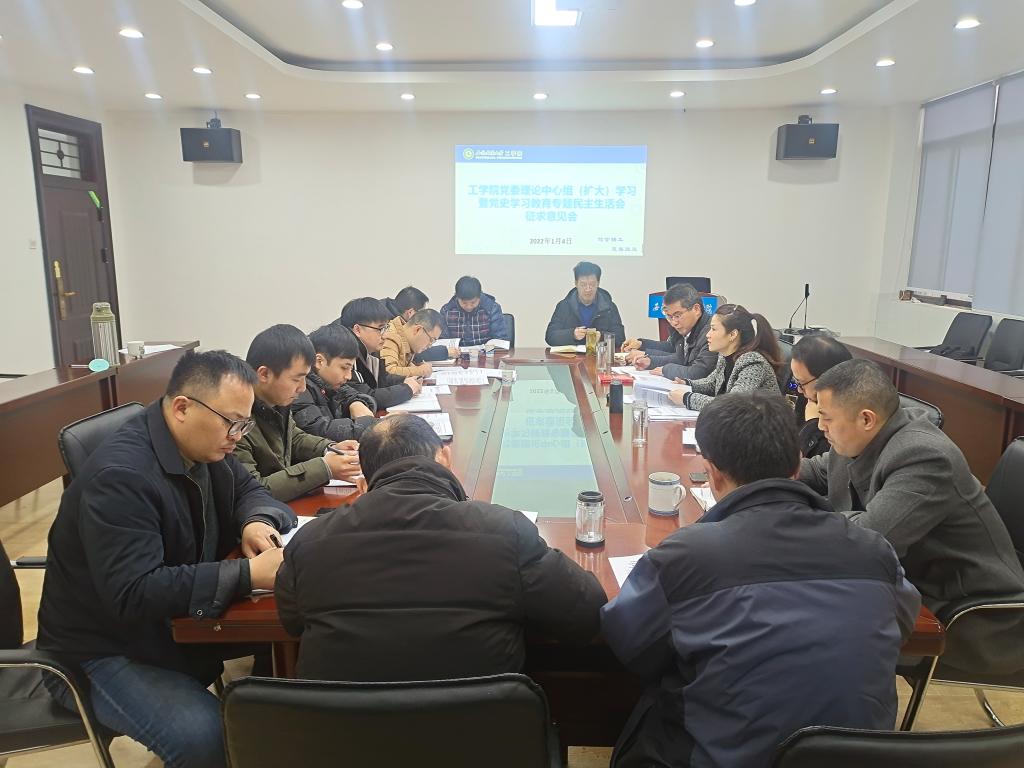 本网讯 1月4日上午,工学院党委召开中心组(扩大)学习暨党史学习教育专题民主生活会征求意见会,学院党政领导、党委中心组成员、党支部书记、系(中心)主任参加会议。会议由院党委书记任琪主持。
