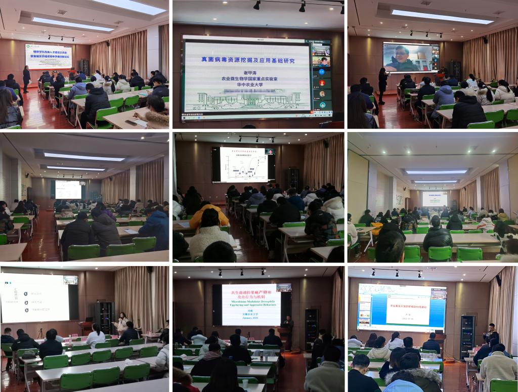 本网讯 1月6日,植物保护学院顺利举办植保学科高端人才建设交流会暨首届安农植保青年学者创新论坛。论坛邀请了浙江大学、华中农业大学、华南农业大学、山东大学和我校共15位优秀青年学者,通过线上线下相结合的方式分享了植物保护领域的最新研究成果,学院青年教师、2021级博士研究生等80余人参加了论坛。开幕式由副院长张华建主持。