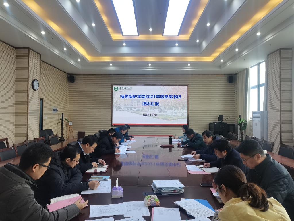 本网讯1月7日下午,植物保护学院在1213会议室开展2021年度支部书记述职评议考核工作。学院领导班子、各支部书记、教师代表参加会议。会议由学院党委书记张平主持。