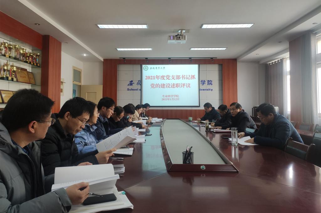 本网讯1月12日下午,生命科学学院在十教420会议室开展2021年度党支部书记述职评议考核工作,学院党委委员、各支部书记参加会议。会议由学院党委书记甘传鹤主持。