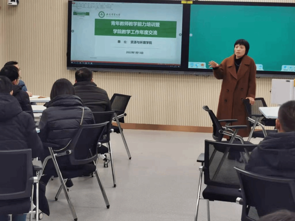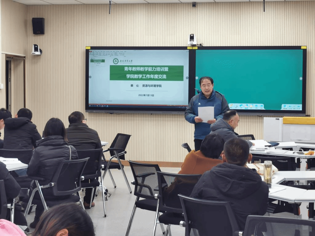 本网讯1月13日下午,资源与环境学院在智慧教室召开教学工作交流会。学院党委书记王琼,党委副书记、纪委书记、副院长姚洪章,学院教学督导老师,各系部主任、副主任,教学秘书,2019年以来入职的青年教师参加了交流会。会议由副院长张震主持。