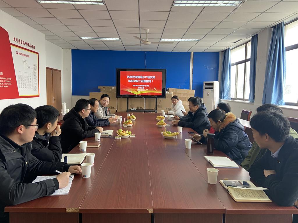 本网讯2月14日,中国水产科学研究院黄海水产研究所院士陈松林莅临我校动物科技学院指导工作,校党委常委、副校长韩军,动物科技学院院长耿照玉、副院长涂健以及部分水产系教职工陪同。