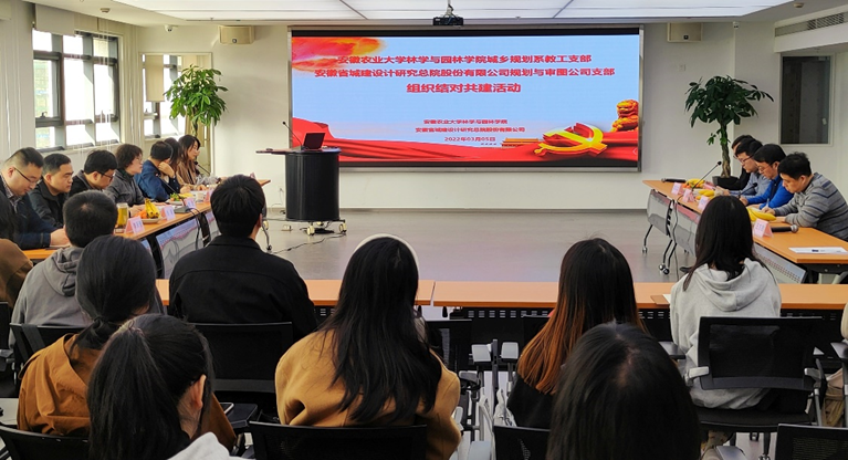 本网讯 转作风、开新局、再出发。为进一步探索校企党支部结对共建模式,增强党支部的凝聚力和战斗力,3月9日,林学与园林学院教工党支部赴合肥市包河区与安徽省城建设计研究总院股份有限公司规划与审图公司党支部开展基层党组织结对共建活动。城乡规划系教工党支部、学生党支部及安徽省城建院相关负责同志参加结对共建活动。