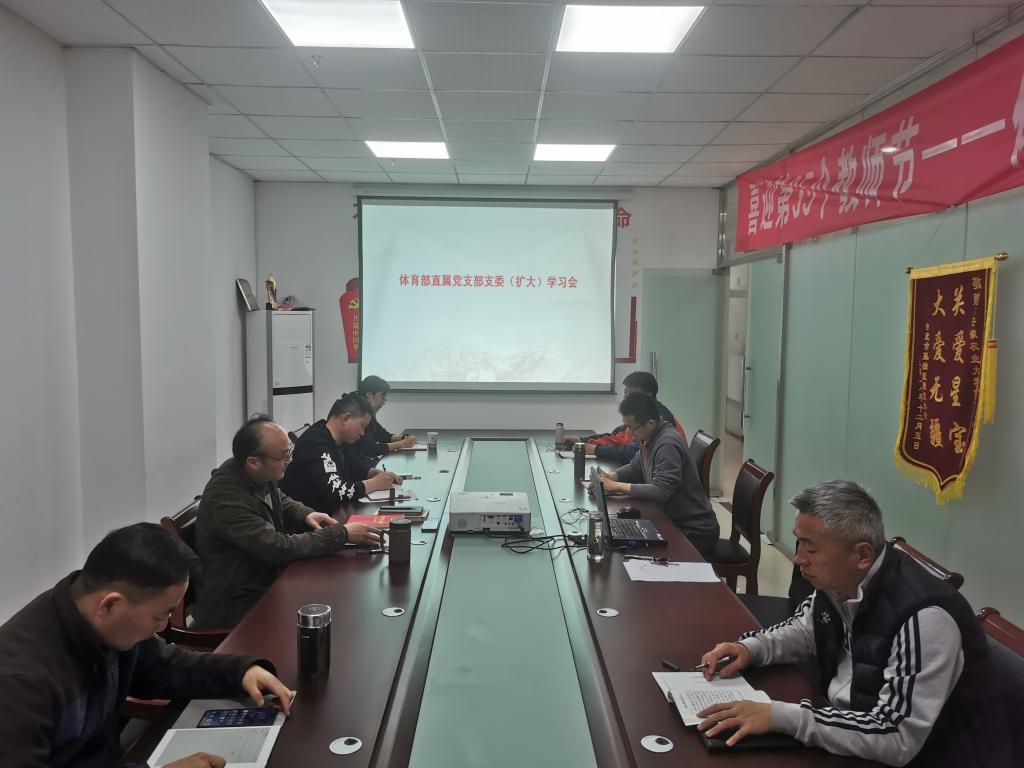 本网讯 3月11日下午,体育部直属党支部在党员活动室召开中心组学习研讨会,会议由支部书记李宏主持,支委委员、各教研室负责人及体育部秘书参加会议。