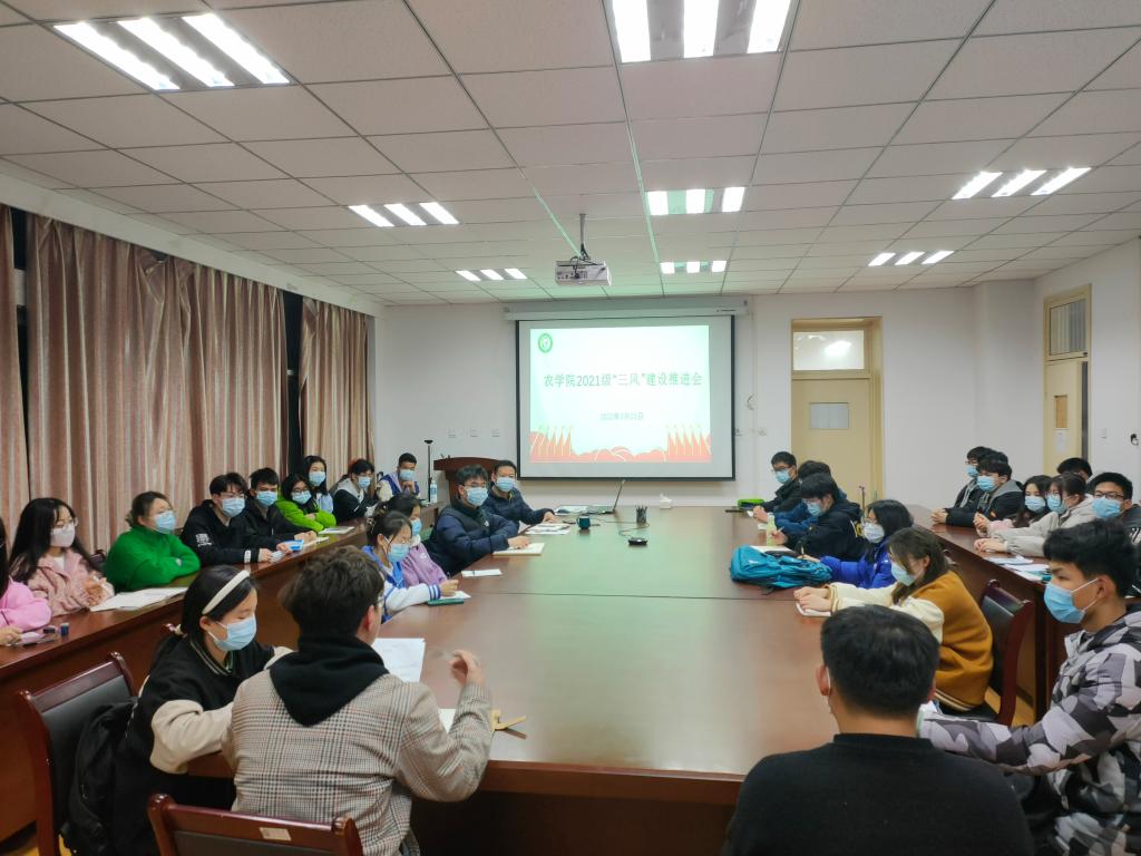 本网讯 为进一步加强班级“三风”建设的力度,3月23日晚7时,农学院在十教518会议室举行“农学院2021级新生班级三风建设推进会”。2021级植物生产类1-8班的两位专职辅导员和主要班委参加会议,会议由学院党委副书记吕大鹏主持。