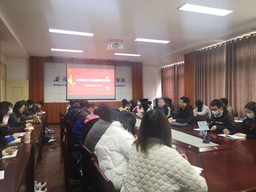 本网讯 为进一步加强基层党组织自身建设,不断提高基层党务骨干的思想政治素质和党务工作能力,充分发挥基层党组织在党建工作中的重要作用,3月23日,学院举办了基层党务骨干第二期党务工作培训。培训会邀请校党委组织部副部长江海波做题为《发展党员工作流程和有关要求》专题报告。培训会由学院党委副书记闫大玮主持。学院5个教工党支部和6个学生党支部书记、支部委员参加了培训。
