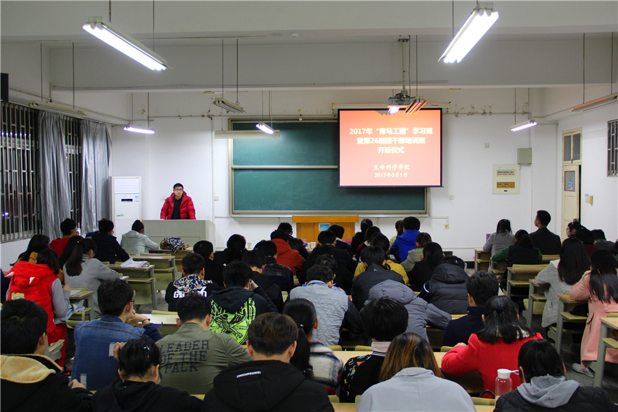 本网讯 3月1日晚,生命科学学院在博学楼319教室举行学院2017年青年马克思主义者培养工程学习班暨第26期团干部培训班开班仪式。学院党委副书记、副院长吴国卿出席开班仪式并做动员讲话,院团委老师、“青马工程”学习班和团干部培训班全体学员参加开班仪式。