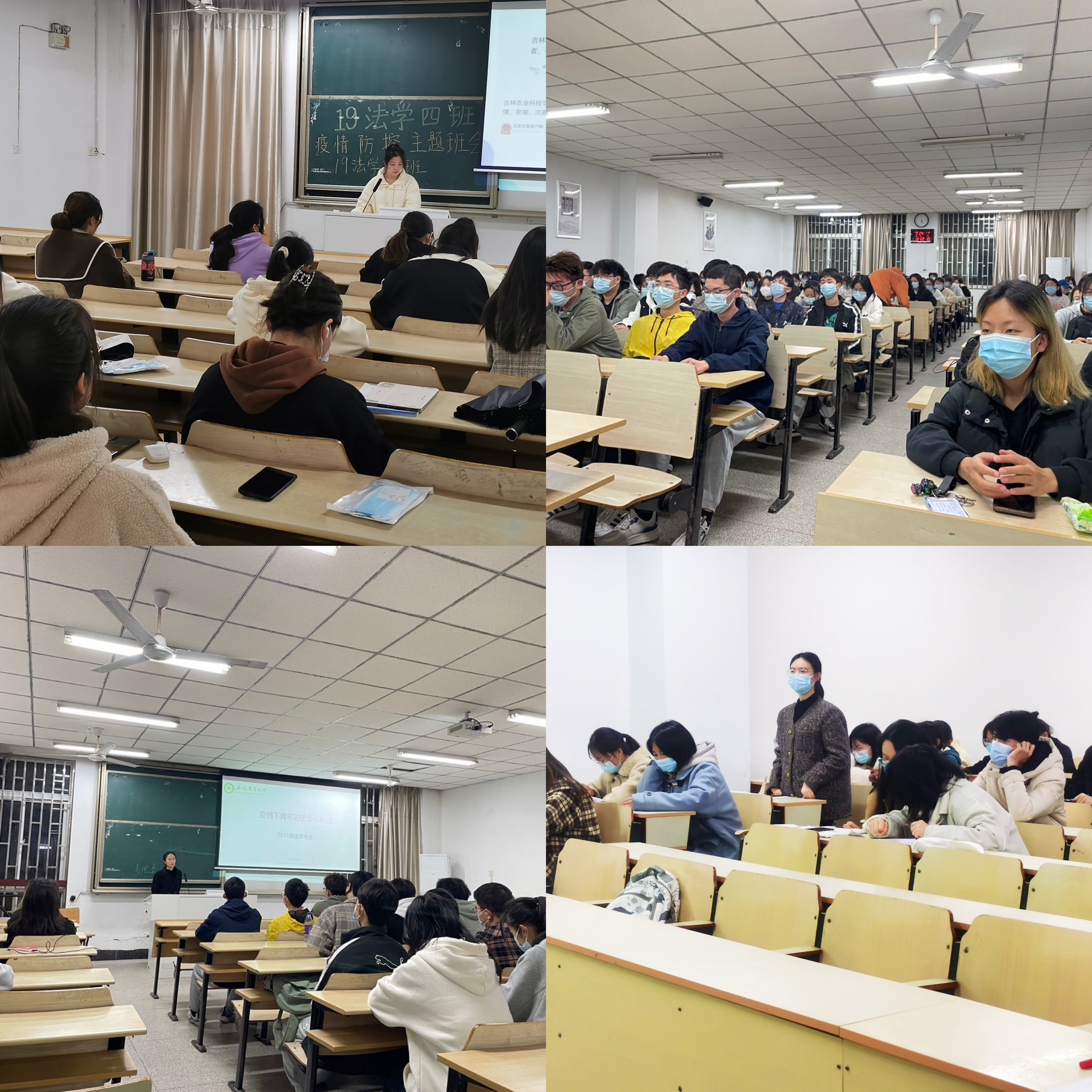 各班级组织学生重温“生命至上、举国同心、舍生忘死、尊重科学、命运与共”的伟大抗疫精神,通过新闻图片、视频等了解近期全国疫情防控形势,引导学生提高认识,传播疫情防控正能量,激发心有大我、肩有大任、行有大德的责任担当。