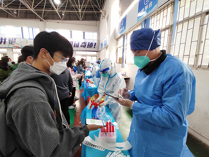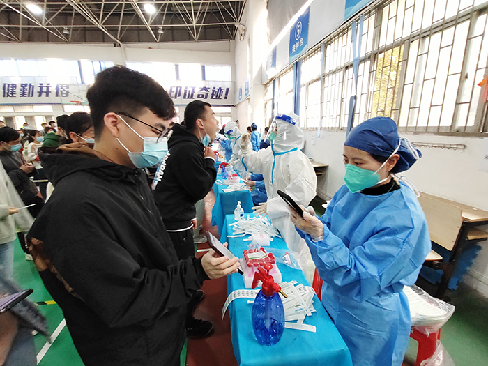 “换位到台子的另一边,确实能够体验到医务工作者的不易。每个人都有每个人的职责,在辅导员的岗位上,我们为师生服务”,刚参加完核酸检测志愿服务的辅导员孙卓感叹道。(通讯员:胡正飞)