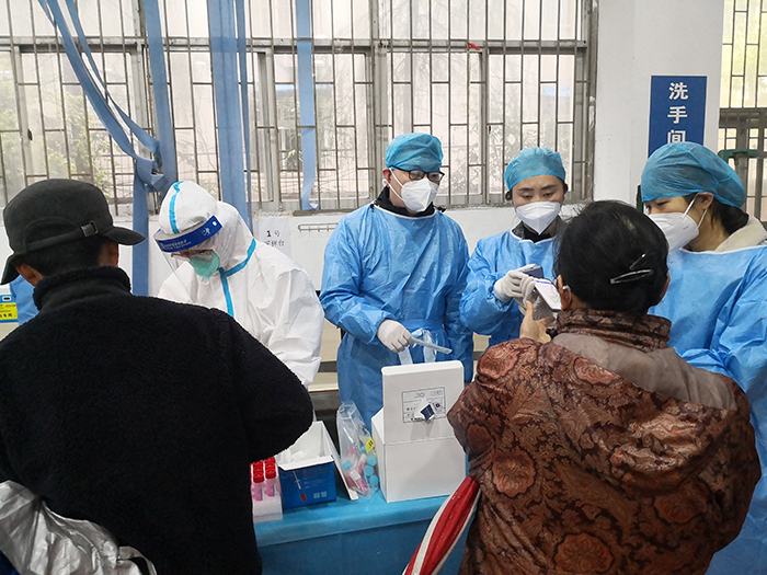 在新冠肺炎疫情多点多地频发散发,合肥市疫情防控关键时期,经济管理学院的辅导员们积极响应学校号召,投身到疫情防控工作第一线,来到学校核酸检测点,承担起了为做核酸检测师生进行扫码信息登记的责任。