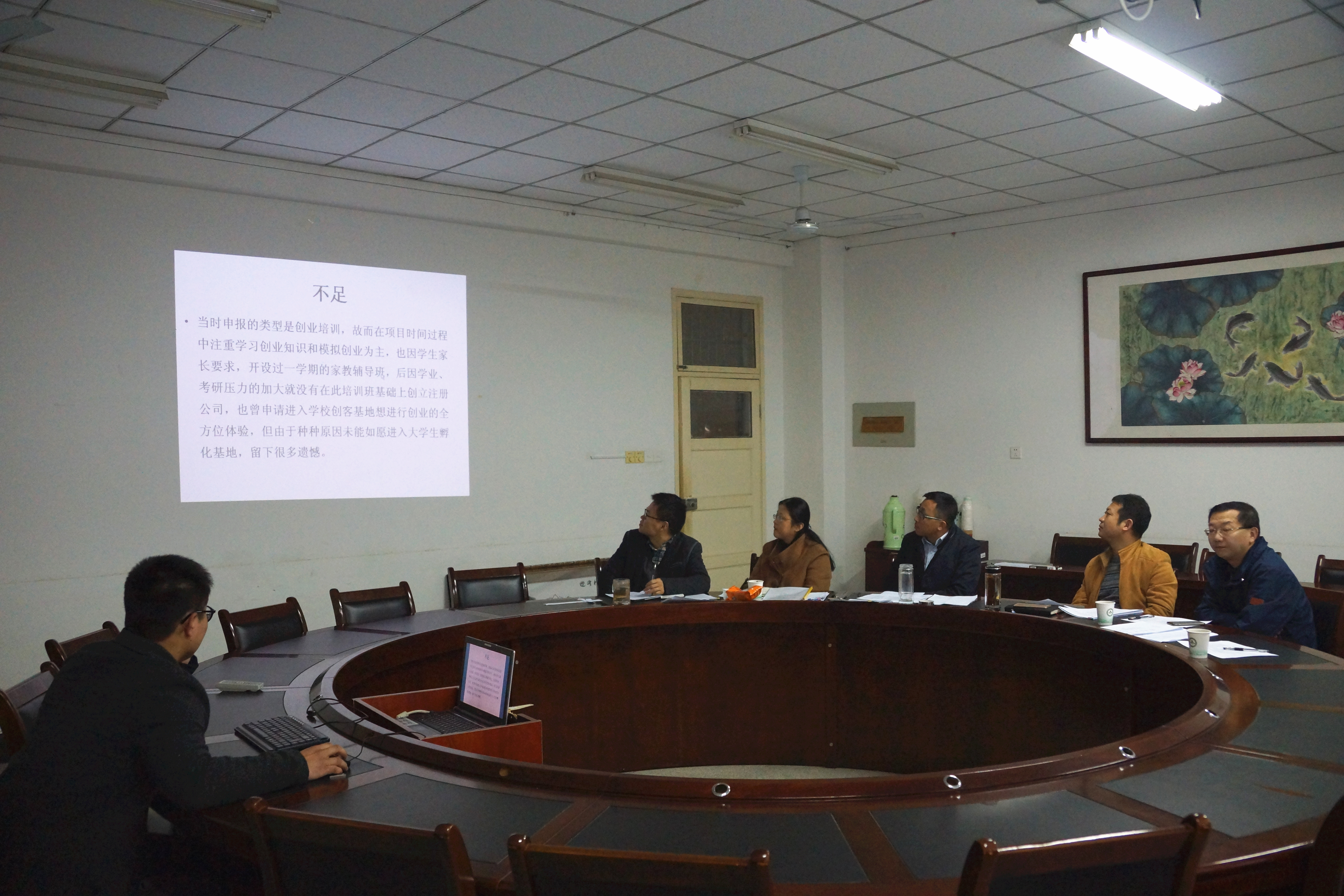本次参与验收的创新创业训练项目共13项,其中国家级1项,省级5项,校级7项。按照学校《关于2015年国家级、省级和校级大学生创新创业训练计划项目结题验收工作的通知 》相关要求及学院相关教学管理制度,本次验收工作采取项目负责人ppt答辩的形式。项目负责人以ppt形式汇报项目的研究内容、研究方法、创新点、已取得的成果。项目验收专家在听取项目负责人ppt汇报的基础上,将其与项目任务书相比较,验收相应的研究成果,并现场对项目研究成果给予评定。