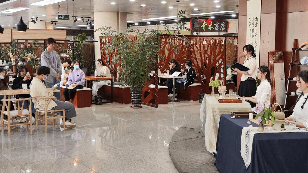 四月的校园,春光明媚,芳菲满溢,春意盎然,姹紫嫣红。下午三时,茶业楼前、大益爱心茶社和祥源一盏年华茶吧,一场以“春意茶清香,青年勇担当”为主题的茶艺表演同步进行,吸引广大漫步在校园的同学们光临与惠顾。茶艺表演现场,伴随着悠扬轻快的音乐,讲解员介绍茶样、茶艺师表演功夫茶道和观赏者专注的眼神,在同学们欣赏的眼光之中饱享春天的气息,现场尽是满满春天的恩赐,继承并传承中华茶文化。