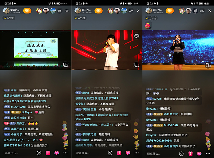 本网讯 随着新冠肺炎疫情多点多地频发散发,合肥市新冠肺炎疫情防控工作进入了关键时期。在众志成城抗击疫情的特殊时期,学校严格执行“封闭管理”。为提振在校学生的抗“疫”信心,缓解“封闭管理”状态下学生的焦虑和不安情绪,做好特殊时期学生的人文关怀和心理健康工作,4月9日晚,经济管理学院“隔离病毒,不隔离浪漫”主题线上直播晚会在抖音平台顺利开播。晚会播出后在学院师生中引起了强烈反响,获得了大家的 “点赞”好评。