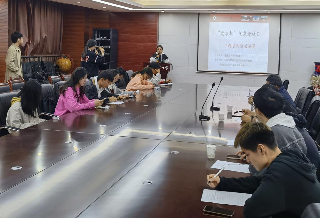 本网讯 4月13日中午,资源与环境学院学生分会联合气象爱好者协会在中西部综合楼510会议室举办了“爱农杯”气象日主题系列活动决赛。学院气象教研室专业教师担任评委。学生分会与气象爱好者协会部分学生及决赛选手参加了本次活动。