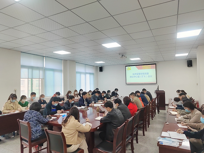 本网讯 4月13日下午,经济管理学院党委理论中心组(扩大)会议暨疫情防控专题会议在经管楼304会议室召开。学院党委理论学习中心组成员、各系主任、各党支部书记、支部委员参加了此次会议。会议由学院党委书记、院长孙超主持。