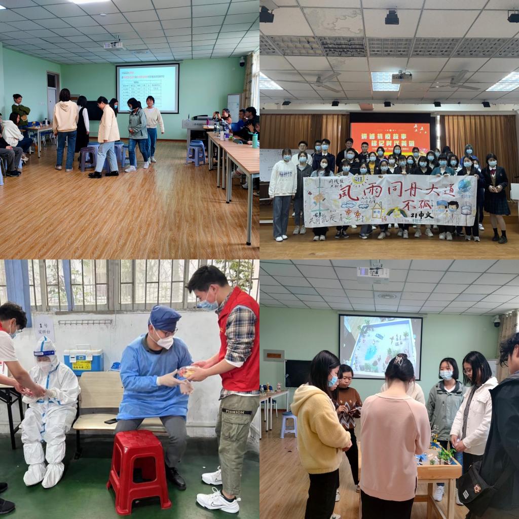 绷紧“思想线”,体现青年担当。为激发全院学生的主人翁意识,凝聚抗疫共识,持续筑牢校园疫情防控防线。学院注重党建带团建,积极发挥学生党员、学生骨干在疫情防控中的模范带头作用,组织开展“人文有义·校园无疫”主题党日、“同战疫·共担当”主题团日活动,团员青年重温入团誓词,感悟团的百年奋斗历史。集中开展疫情防护知识交流、抗疫精神演讲,用一幅幅绘画作品弘扬抗疫精神,以艺术的力量传递正能量。全员参与“疫情防控下的青年担当”主题班会活动,学习学院统一编印的《新冠肺炎疫情防控政策&学生违纪处理案例汇编》,并集中签订学生疫情防控承诺书,切实做到教育引导到位,让防疫知识入脑入心,坚决克服麻痹思想和侥幸心理,绷紧“思想线”。