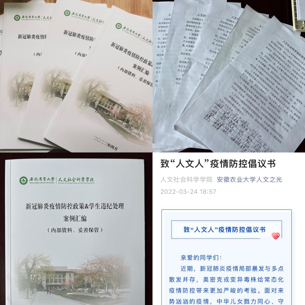 本网讯 “各系主任、各班级辅导员要深刻认识疫情防控‘四方责任’重要性,做到守土有责、守土尽责,广大党员干部,要当好师生的贴心人和主心骨,坚定站在疫情防控一线。”近日,人文社会科学学院在全面贯彻落实在肥高校疫情防控省市联动排查问题整改调度视频会会议精神暨学院疫情防控工作会议上向全体师生提出了统一要求。一直以来,学院高度重视疫情防控工作,切实做到强化教育引导,筑牢疫情防控“三道防线”,确保师生生命安全和身体健康。