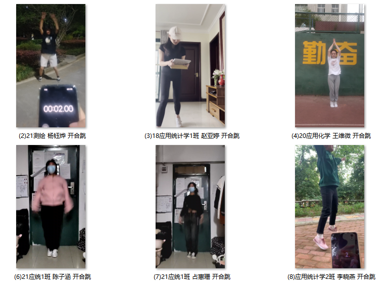 本网讯 为激励同学们疫情防控期间锻炼身体,提高免疫力,激发同学们运动热情,引导全院师生积极做好新冠肺炎疫情防控工作,同时增强师生强心健体意识,在运动中汇聚正能量,为抗击疫情储备青年力量。理学院积极响应学校号召,开展了以“运动战‘疫’‘疫’绝高下”为主题的首届线上运动会。运动会于4月1日正式开始,历时半个月,于4月15日圆满结束。学院师生积极参赛,展现了理学院师生大家庭战疫必胜的信心和决心,理学院师生相约初春的“云端”,“疫”起动起来!