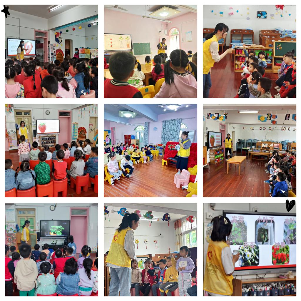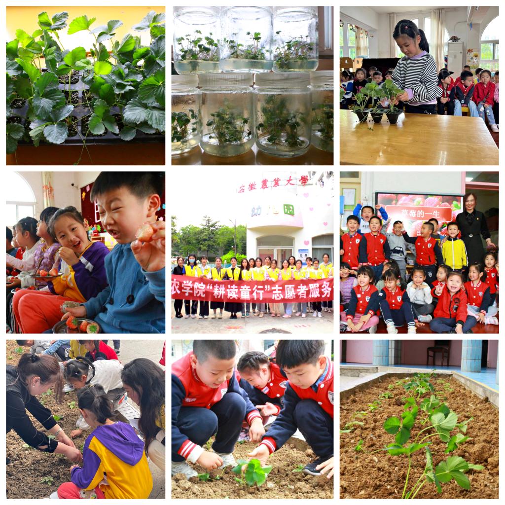 习近平总书记曾强调,“农村是我国文明的发源地,耕读文明是我们的软实力。”学院按照总书记指引的方向,积极筹划开展耕读教育,打造系列品牌活动。学院学生党员、普通同学踊跃报名、集体备课、认真授课,带领幼儿园大中小三个年级9个班小农娃们感受“草莓的一生”。小农娃们沉浸式观察草莓组培苗、草莓种苗和品尝各品种草莓,并参与幼儿园耕种地的草莓种植实践当中。志愿者们意犹未尽,小农娃们欢喜雀跃,快乐、欢腾和分享呈现在课堂的每一分钟;新知、成长和价值体现在活动中每一个环节。学生在志愿服务过程中收获了快乐,传授知识同时加深了对专业的思想认识,让小农娃们对草莓生长过程有了清晰的了解。