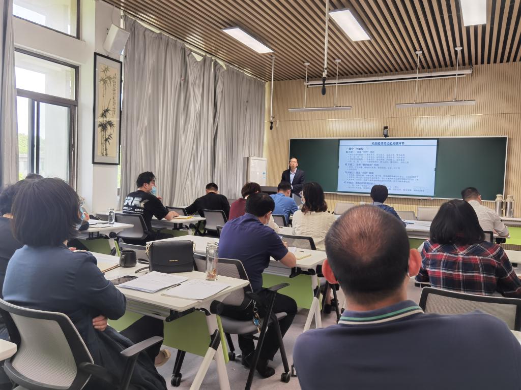 本次会议还就师德师风建设与疫情防控工作作了再部署。杜兆芳传达学校师德师风整治月动员部署会精神,各教工党支部书记逐一汇报目前可能存在的师德师风建设问题和风险点。院党委书记夏成云传达了上级疫情防控工作会议精神,开展了疫情防控知识宣讲,并就统筹好疫情防控工作和学院重点工作进行了部署安排。