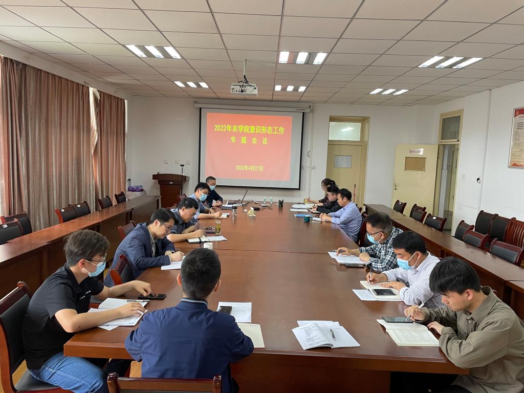 本网讯 4月27日下午,农学院2022年上半年意识形态工作分析研判会在十教518会议室召开。学院党政领导、党委委员、各党支部书记及专职辅导员等人员参加会议,会议由党委书记管志权主持。