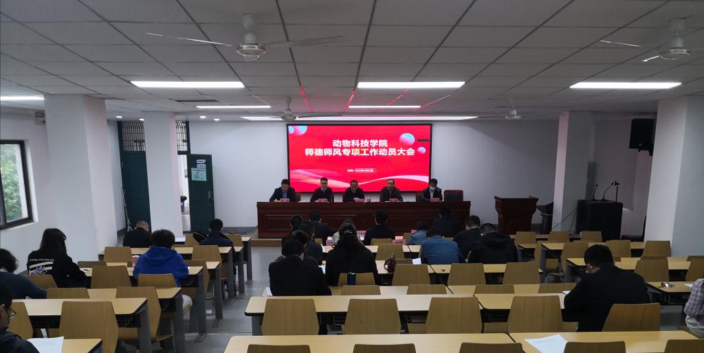 内化于心,开展多层次专题学习,夯实师德师风教育的理论基础。4月20日上午,学院在动科楼306会议室召开党政班子、支部书记、科级以上干部参加的师德师风专项工作扩大会议。会议传达了学校有关师德师风专项工作的文件精神,特别就开展是否存在侵害学生利益、导学关系问题、不当言论、违反财经纪律等进行警示教育,并布置排查工作。4月29日,学院在动科楼318室召开师德师风专项工作全体教工线上、线下动员会议,进一步传达部署学校、学院师德师风专项工作内容。要求全体教工员工认真学习党和国家关于教育的政策理论,落实学校文件精神,担负起塑造灵魂、塑造生命、塑造新人的时代重任。