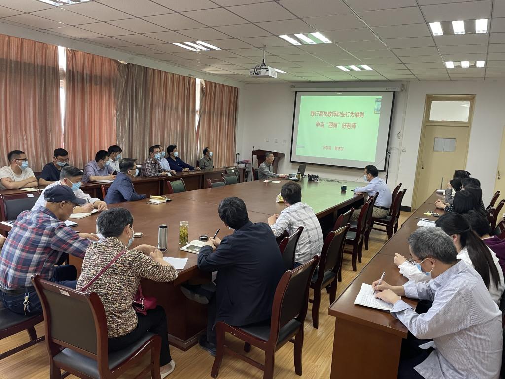 管志权以《践行高校教师职业行为准则,争当“四有”好老师》为题作专题辅导报告。他以习近平总书记发表“四有”好老师重要讲话为切入点,阐述了高校教师在社会发展和学校人才培养中的重要地位,强调了加强师德师风建设的重要性。他结合高校教师违反师德师风典型案例对《新时代高校教师职业行为十项准则》中的十个内容进行了逐条领学和详细解读。他指出,全院教职工在教书育人过程中时刻自重、自省、自警、自励,做到思想自觉和行动自觉。要牢记总书记的殷殷嘱托,既要精通专业知识,又要涵养德行,努力做精于“传道授业解惑”的“经师”和“人师”的统一者,做学生为学、为事、为人的大先生。