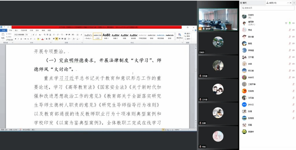 本网讯 5月4日下午,农学院在十教518会议室召开师德师风专项整治工作推进会。会议由院党委书记管志权主持,全院教职工通过线上线下相结合的方式参加了会议。