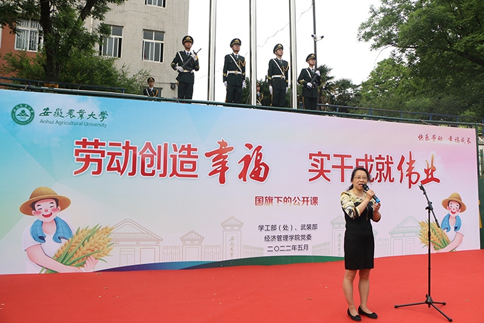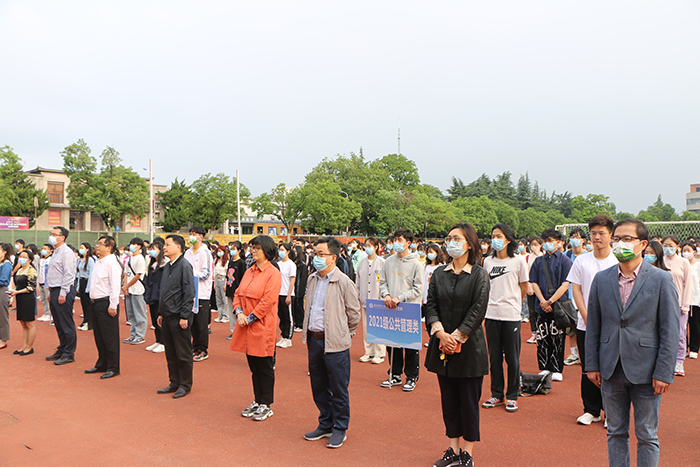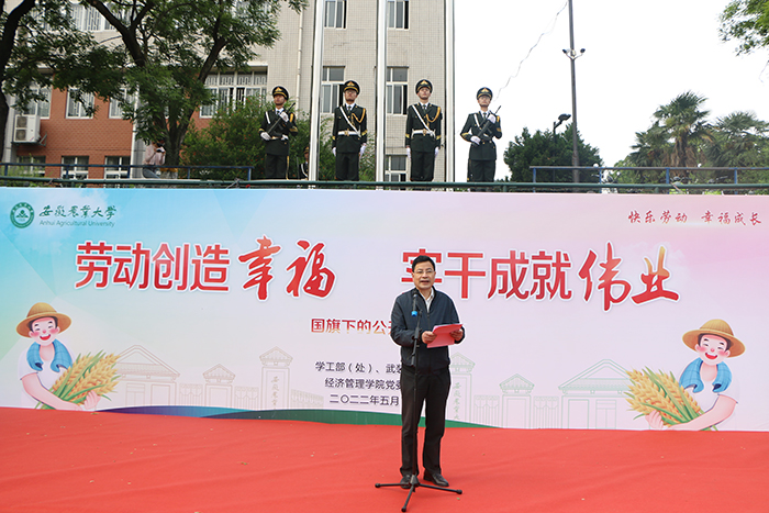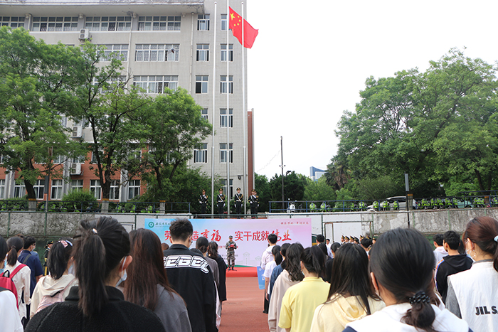 本网讯 5月9日上午,经济管理学院在校第一运动场举行“劳动创造幸福 实干成就伟业”主题升旗仪式。校党委学生工作部、党委武装部、学生处处长姚莉,副处长刘柳、周涛,学院党政领导、全体专职辅导员、2021级班主任老师,学院2021级全体本科生参加了升旗仪式。升旗仪式由院党委副书记、纪委书记、副院长吴国卿主持。