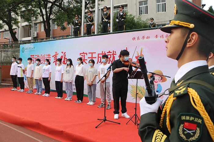 伴随着小提琴独奏《我爱你,中国》的悠扬旋律,学院党委副书记、常务副院长何如海,学生处副处长、学生资助管理中心主任周涛为陆中翔等10名同学颁发2021年度“勤工助学先进个人”荣誉证书,勉励学生要重视劳动、努力学习,用劳动和奋斗书写青春华章。