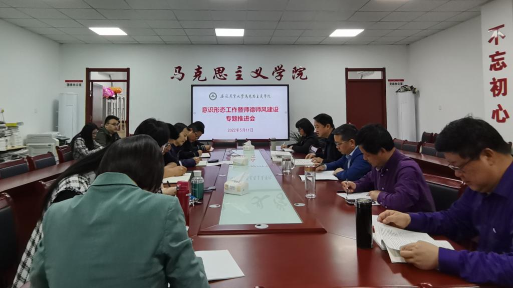 本网讯 5月11日下午,马克思主义学院召开专题推进会,就学院意识形态工作、师德师风建设、安全稳定工作进行专题学习推进。学院党委书记、院长黄洪雷主持会议。党委副书记、纪委书记、副院长袁修雨,各支部书记、部(中心)主任、工会委员、办公室成员参加会议。