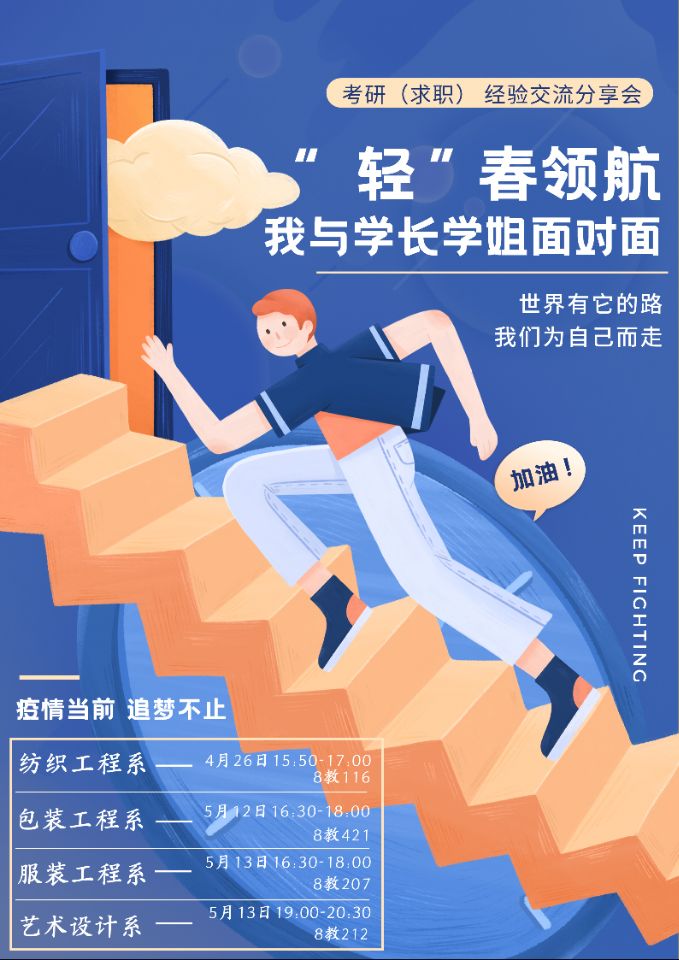 本网讯 榜样,是引领向上的旗帜,是促进进步的阶梯。为充分发挥优秀毕业生榜样引领作用,帮助低年级同学共同进步。近日,轻纺工程与艺术学院组织开展“轻”春领航——我与学长学姐面对面活动,邀请优秀毕业生代表深入各系交流分享考研、保研与求职经验。