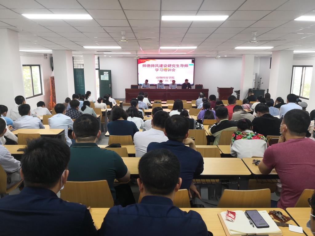 本网讯 根据师德师风专项工作月实施方案精神和关于开展科研诚信专题学习讨论活动的通知,5月15日下午,动物科技学院在318会议室举行研究生导师师德师风专题培训会,就科研诚信、导学关系、本科教学管理等进行专题学习讨论。会议由学院党委书记曹俊主持,学院教工参加了会议。
