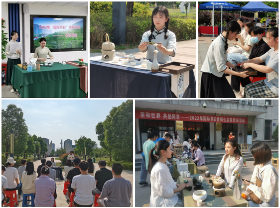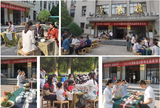 本网讯 5月21日,时值第三个国际茶日,茶与食品科技学院分别在茶业楼前、科技楼茶学重点实验室和智慧广场分别举办“茶和世界 共品同享”2022年国际茶日暨师生品茶饮茶活动。